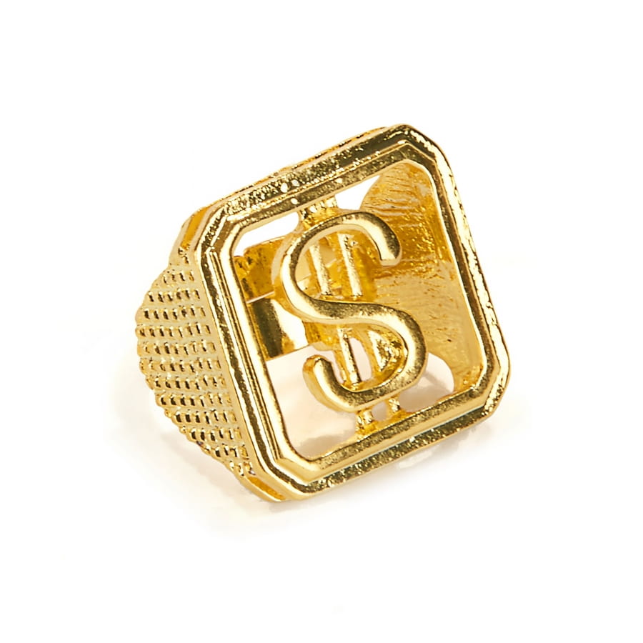 Cette bague dorée imprimé dollars arbore une magnifique couleur or et bronze.