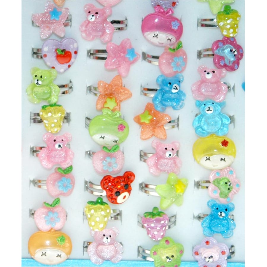 Une bague avec un motif dessus qui peut être une peluche, une fraise ou encore une fleur de très joli cœur. Pas de choix concernant le modèle ou la couleur. La bague est en fantaisie vous pouvez l'offrir a votre fille.