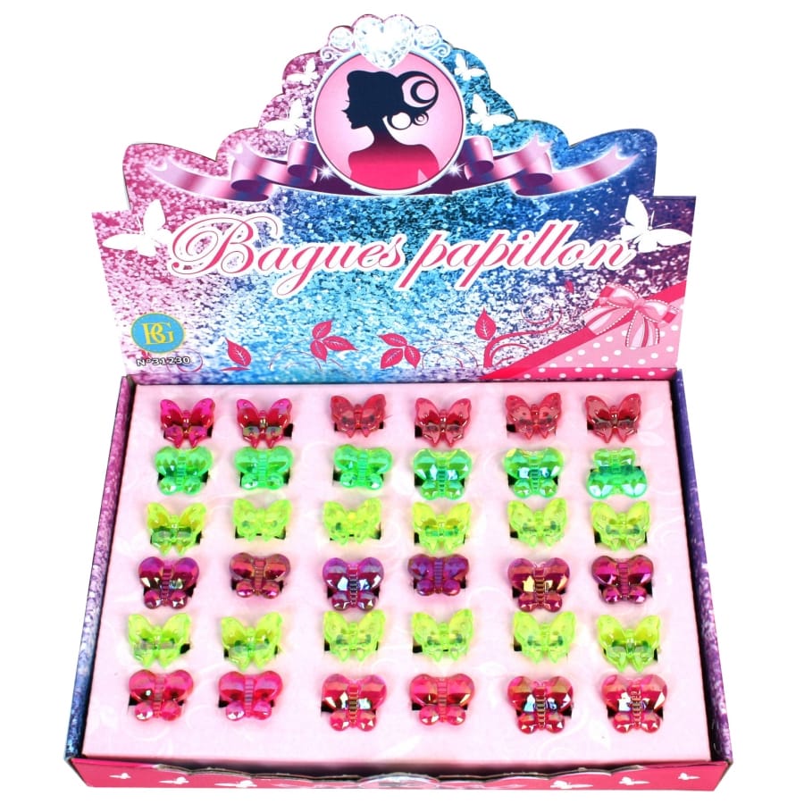 Les papillons ne s'envolent pas tous. Vous en aurez la preuve avec ces jolies bagues. Elles sont spécialement dédiées aux fillettes coquettes. Ces merveilleuses bagues fantaisies présentent des papillons de diverses couleurs. Elles sont vendues à l'unité, et vous n'aurez pas le choix de la couleur à la commande. Cela dépendra de l'arrivage. Comme sur une belle fleur des prés, le papillon se posera sur son doigt et y restera toute une saison !