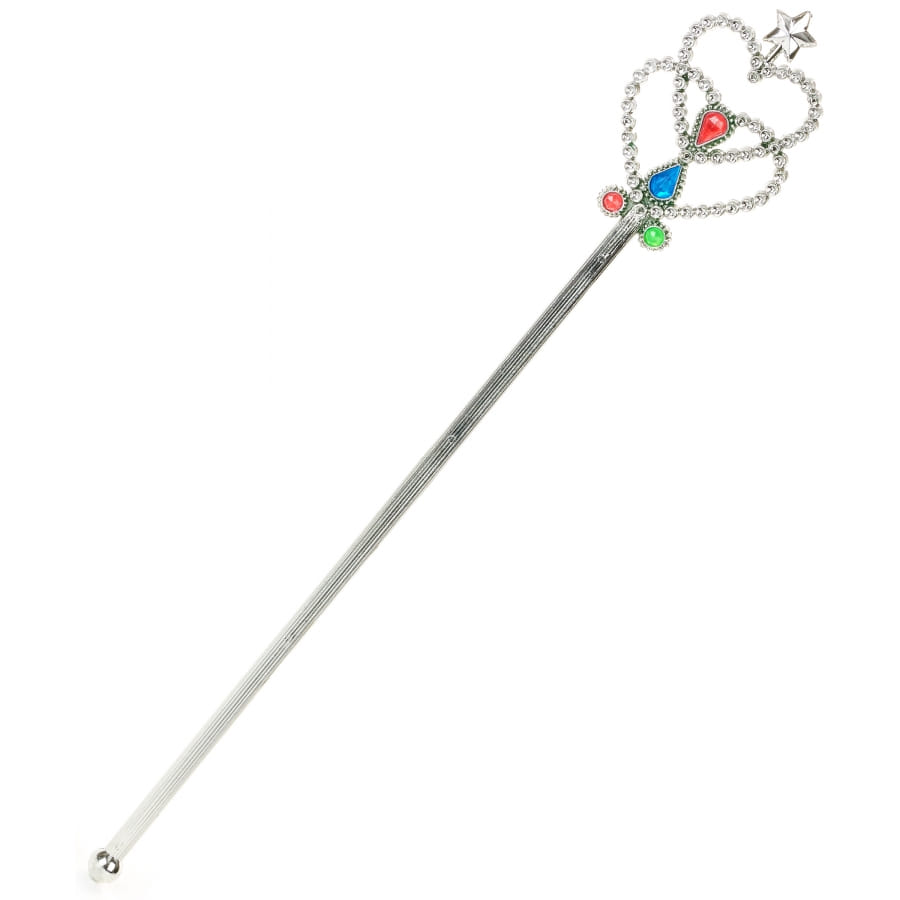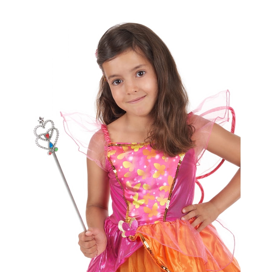 Un deux trois... Transforme-toi ! Métamorphosée en gentille petite fée, votre fillette aura besoin de sa baguette argentée de fée avec strass. Ce modèle en plastique est de couleur argent avec de faux strass colorés incrustés. L'extrémité de la baguette est en forme de double coeur accompagné d'une étoile au sommet. La magie des fées peut maintenant opérer !