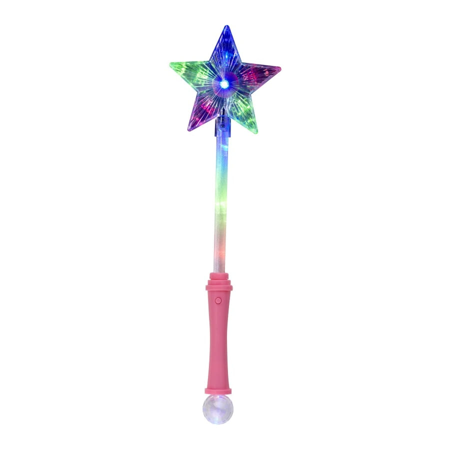 Si votre fille se déguise en princesse, elle aura besoin de cette baguette étoile magique. Elle sera heureuse d'avoir cet accessoire dans sa main. La manche est rose, la baguette est lumineuse avec une étoile à l'extrémité.