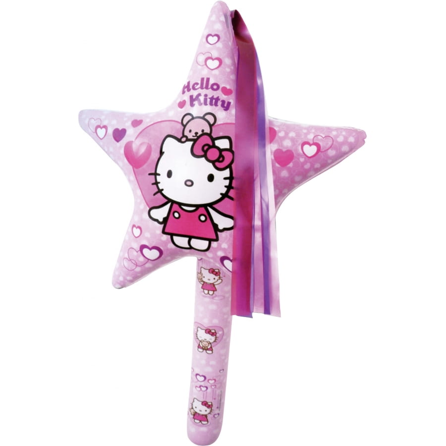 Baguette magique gonflable "Hello Kitty" sous licence. Cet accessoire en forme d'étoile est de couleur rose et mesure 70 centimètres de long. Avec cette baguette, votre fille pourra compléter son déguisement de fée sans aucun effort.