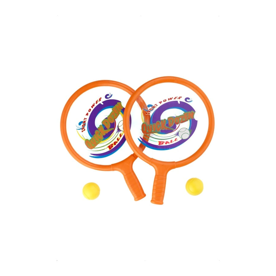 Pour les vacances pourquoi ne pas offrir ce set de raquettes aux enfants, ils seront heureux de jouer avec. Ce set de raquette et de balles est composé de deux raquettes de couleur orange, l'intérieur est transparent. Il y a aussi deux balles de couleur jaune.