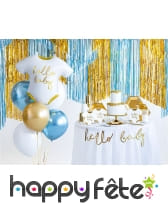 Laissez-moi vous peindre un tableau : un ballon en forme de body pour bébé, blanc comme un nuage doux et pur. Mais attendez, ce n'est pas tout ! Au centre de ce doux nuage blanc se trouve une inscription élégante : "hello baby", imprimée en doré. Oui, doré ! Juste assez brillant pour attirer l'attention sans être trop tape-à-l'oeil. Le doré apporte cette touche d'élégance et d'éclat que chaque événement autour de bébé mérite.