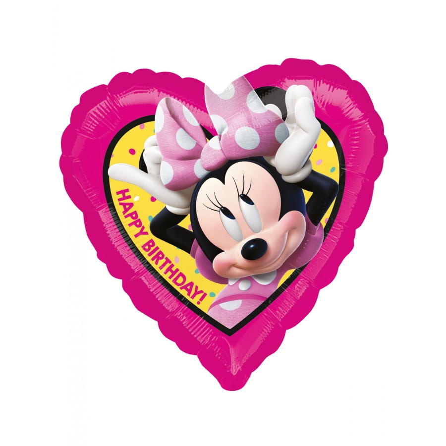 Le ballon anniversaire Minnie Mouse coeur de 43 cm est en aluminium.