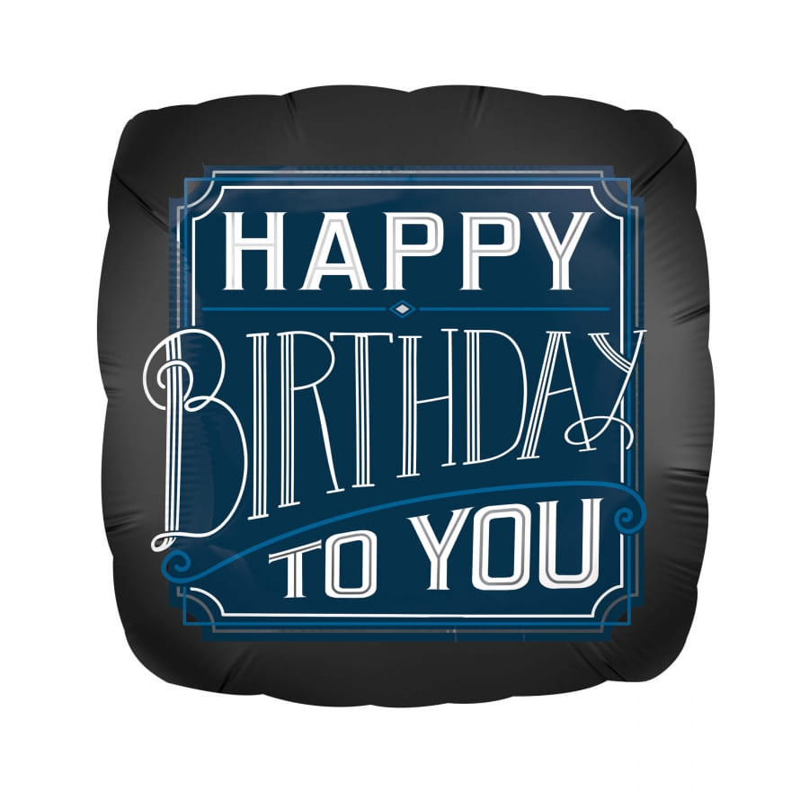 Le ballon carré noir Happy Birthday to you de 43 cm est en aluminium.