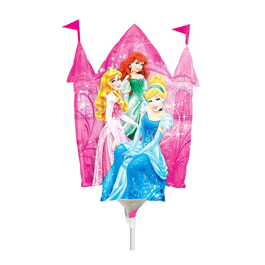 Votre conte de fée continue avec un ballon château et princesses Disney, sur tige. Sous licence Disney, cet article représente un magnifique château rose et ses belles princesses, fixé sur une tige pour une meilleure maniabilité. Il fait 43 x 30cm de dimension. Notez que l'article que vous recevrez sera déjà gonflé.