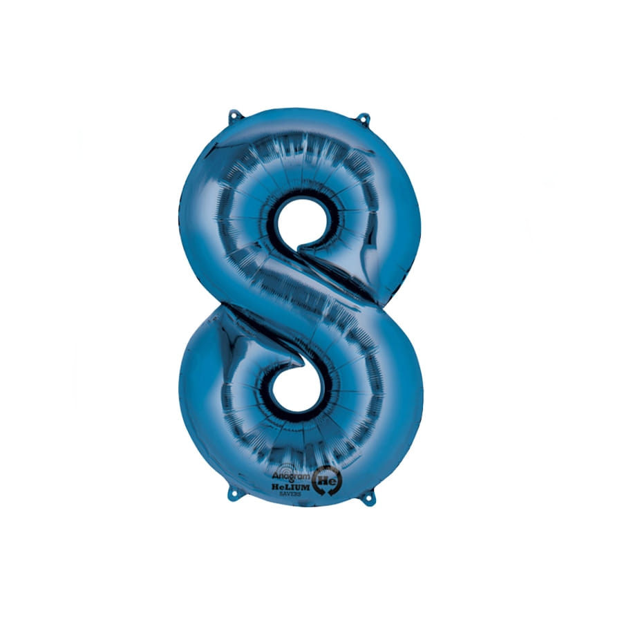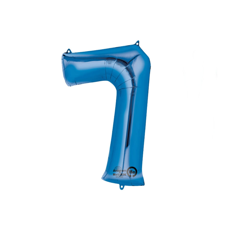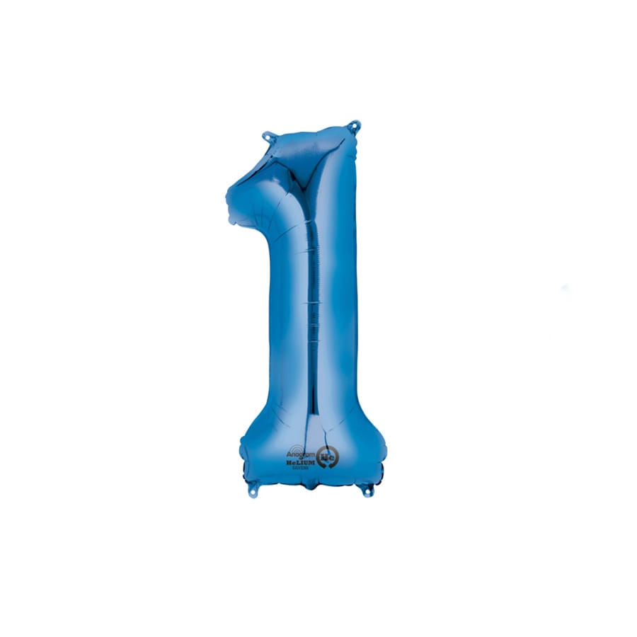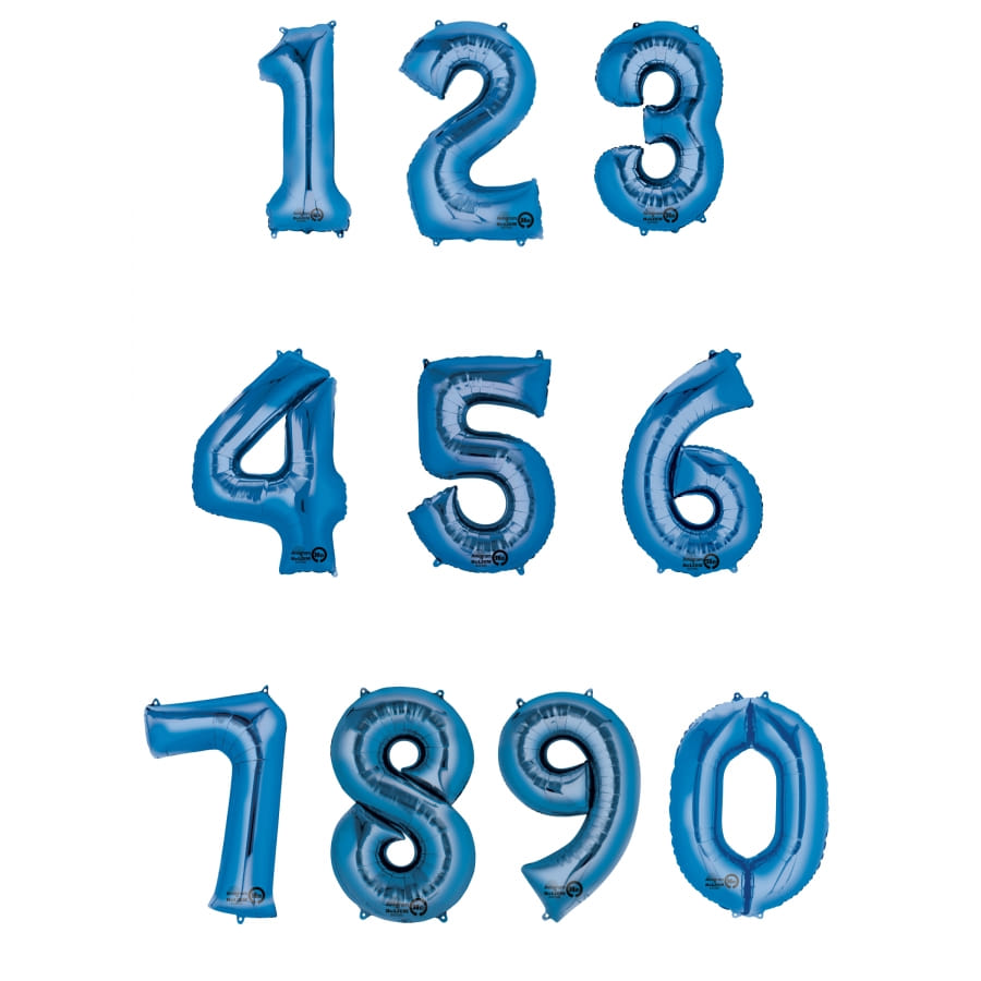 Il s'agit d'un ballon en aluminium de couleur bleue, qui présente la forme d'un chiffre allant de 0 à 9.