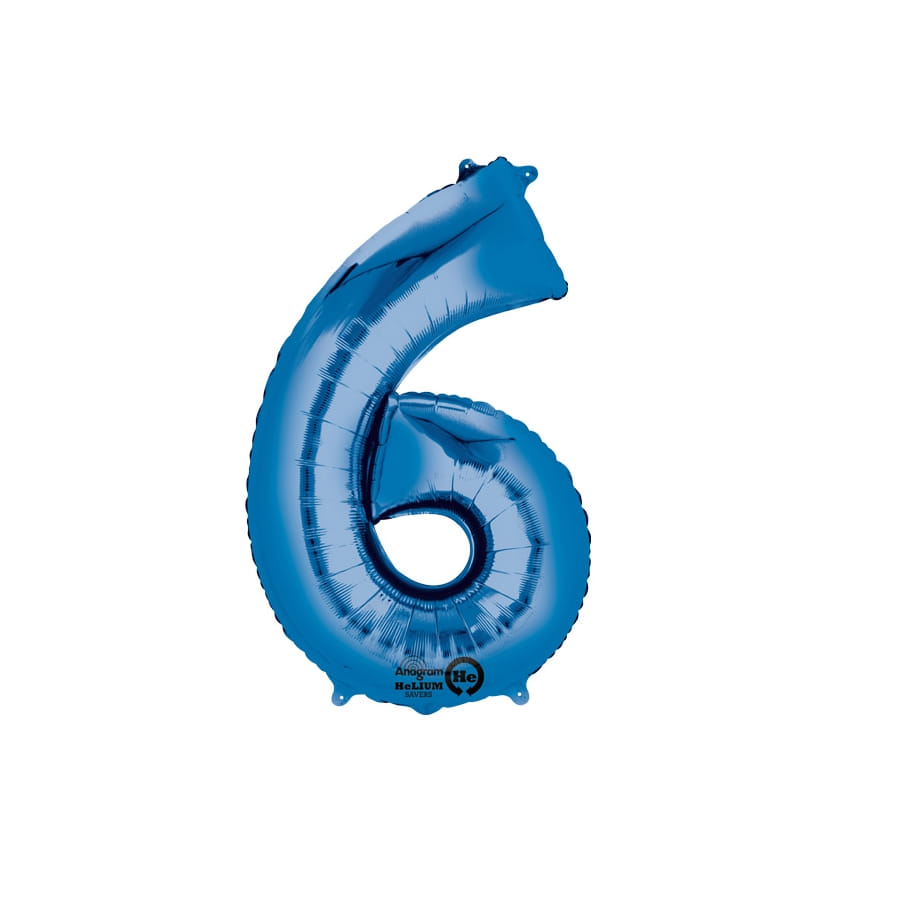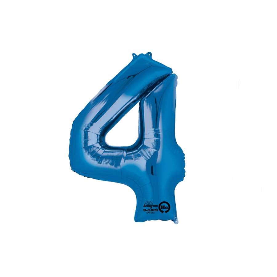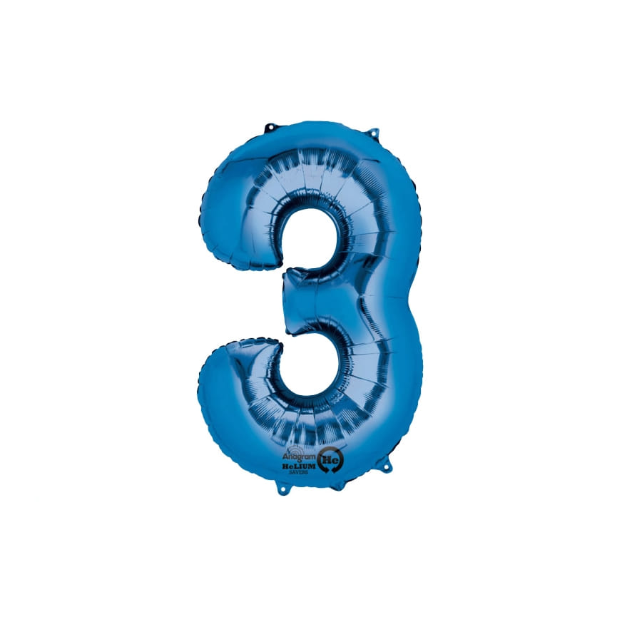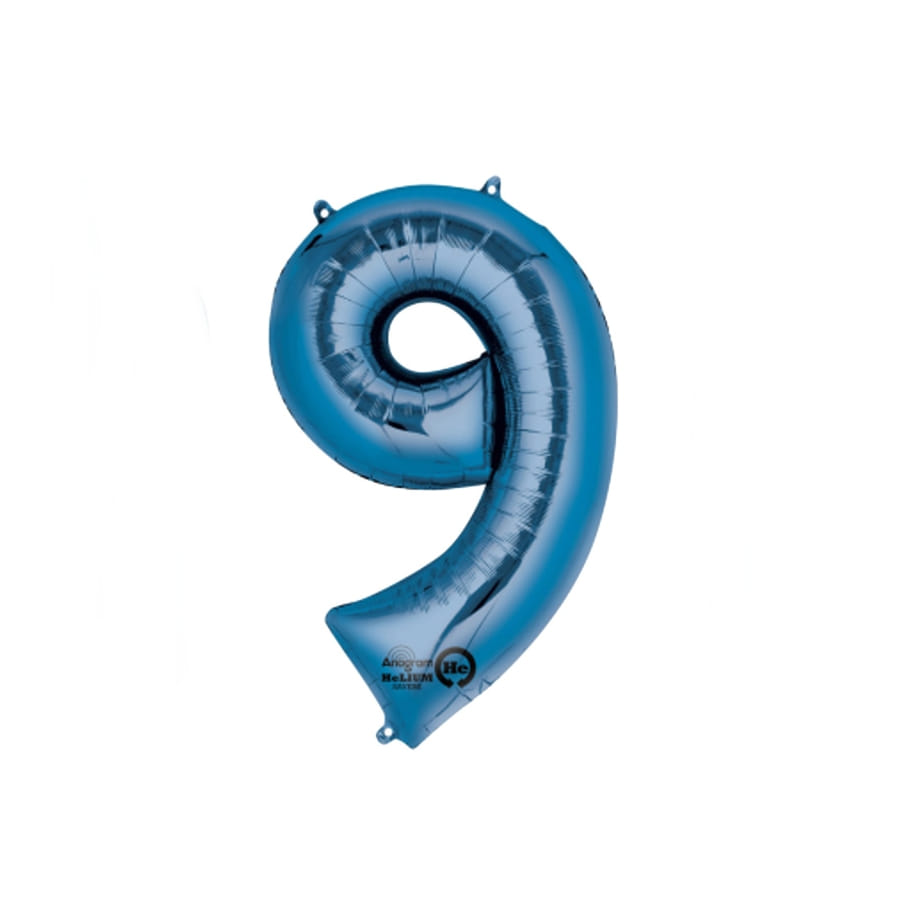 Il s'agit d'un ballon en aluminium de couleur bleue, qui présente la forme d'un chiffre allant de 0 à 9.