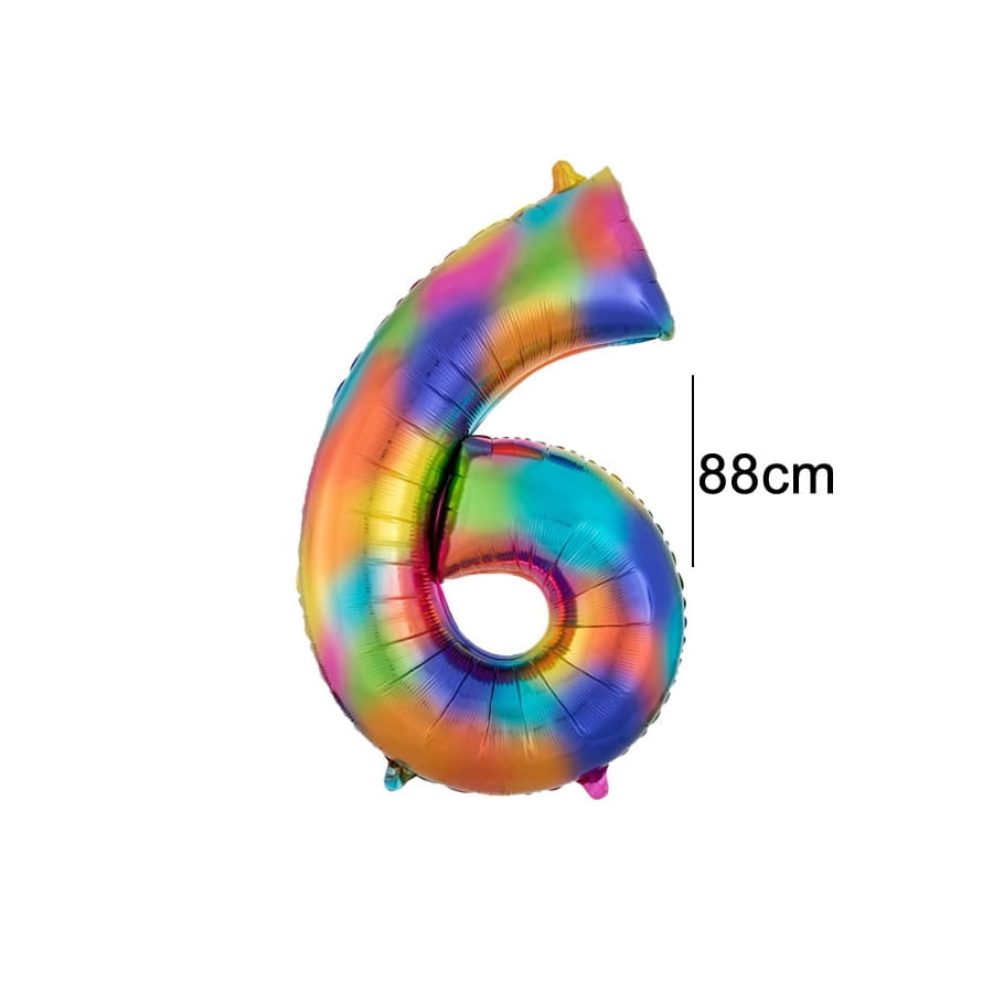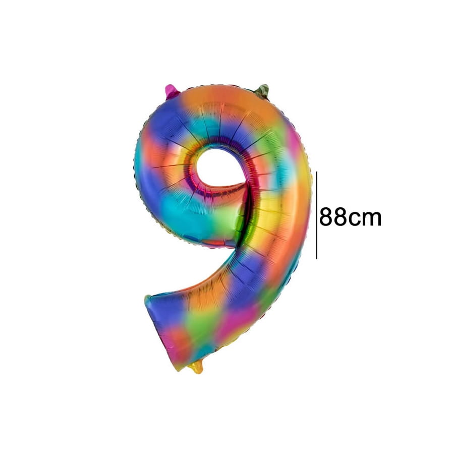 Il s'agit d'un ballon en aluminium qui représente un chiffre aux couleurs arc-en-ciel.