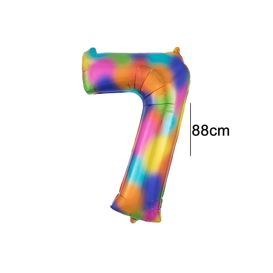 Ce ballon chiffre multicolore en aluminium, 88 cm, apportera une touche colorée à votre décoration d'anniversaire.
