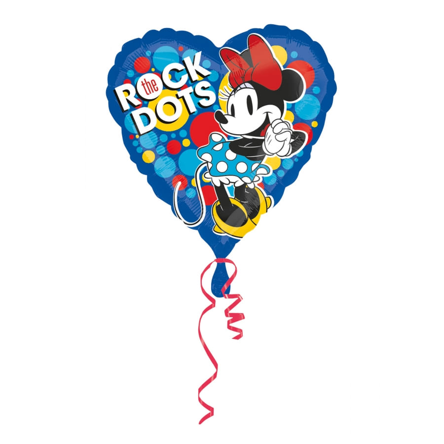Le ballon coeur Minnie rock dots bleu de 43 cm est en aluminium.