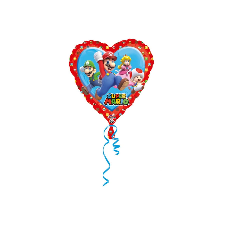 Le ballon en forme de coeur Super Mario et ses amis de 43 cm est en aluminium.