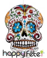 De couleur blanc, il est s'agit d'une tête de mort imprimée de fleurs multicolores.