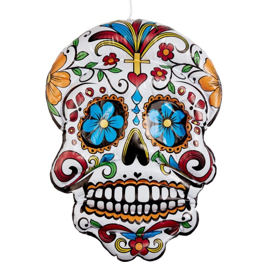 Le ballon crâne Dia de los muertos à gonfler de 100 cm est un ornement idéal pour agrémenter votre décoration d'halloween.
