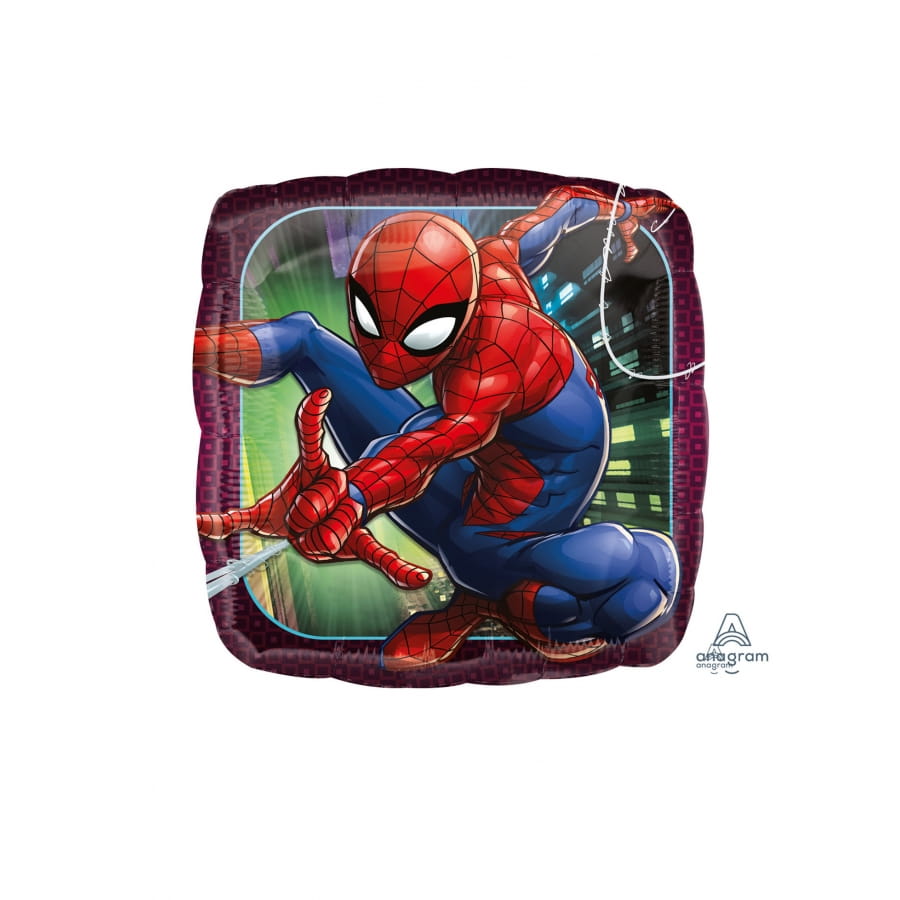 Le ballon Spiderman en carton carré de 23 cm est en aluminium.
