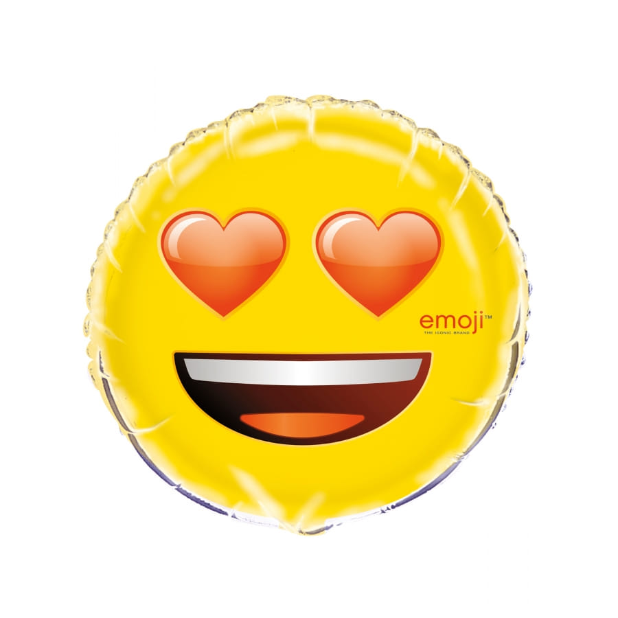 l'amour sera au rendez-vous si vous introduisez, dans votre décoration, ce ballon émoticone coeurs dans les yeux.