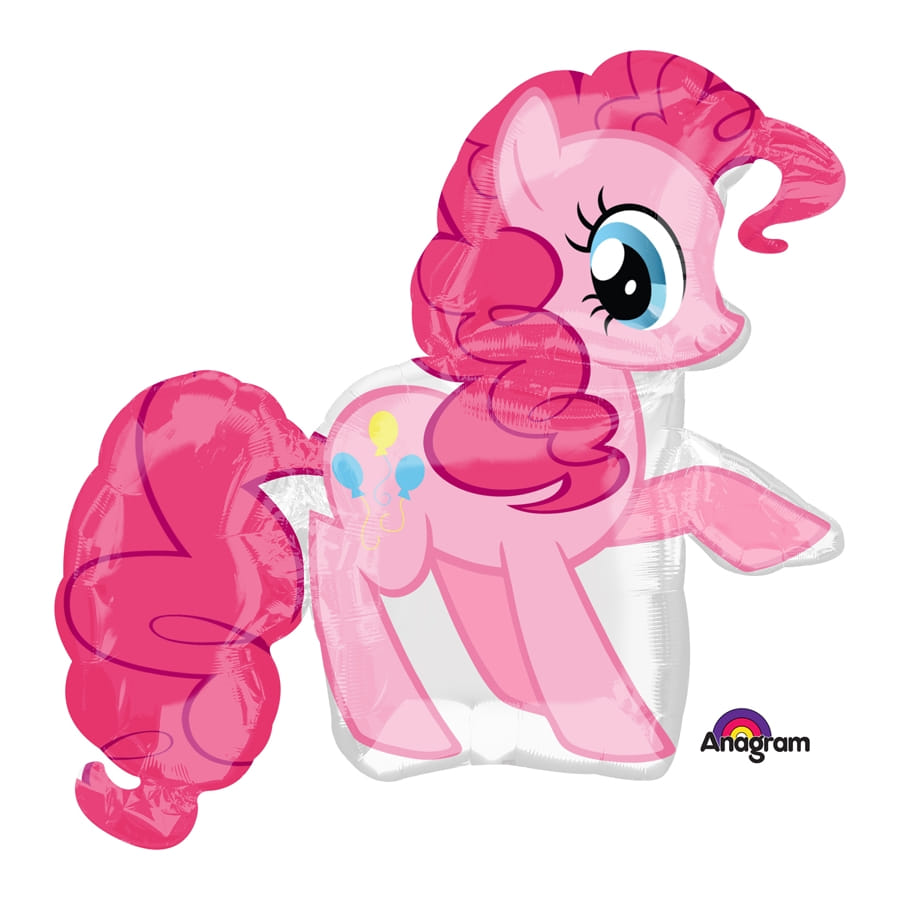 Ce ballon de 76 x 83 cm dessine parfaitement la silhouette de Pinkie Pie, toute en rose, avec son oeil pétillant et sa belle crinière.