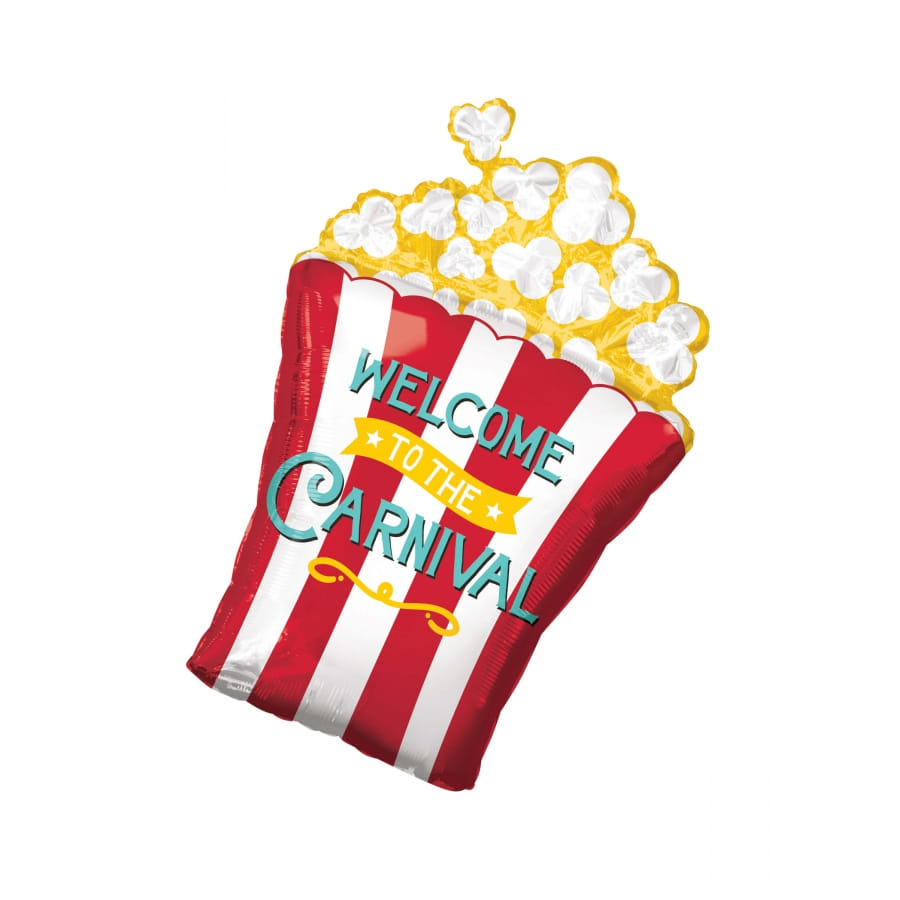 Le ballon en forme de pot de popcorn de 50 x 73 cm en aluminium.
