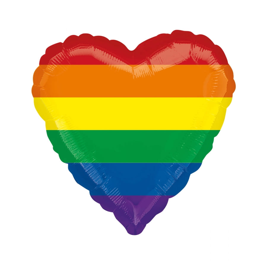 Le ballon gaypride en forme de coeur mesurant 43 cm est en aluminium.