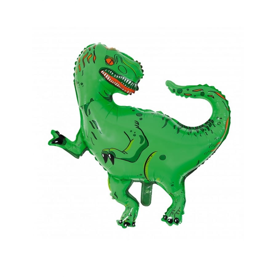 Le ballon géant d'un T-rex vert de 77 x 78 cm est en aluminium.