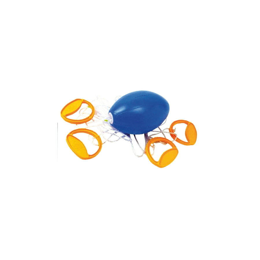 Ballon glisseur en plastique de couleur blanche, bleue et jaune. Cet accessoire mesure 13 sur 6 centimètres. Amusez-vous avec ce ballon lors d'anniversaires ou de kermesses.