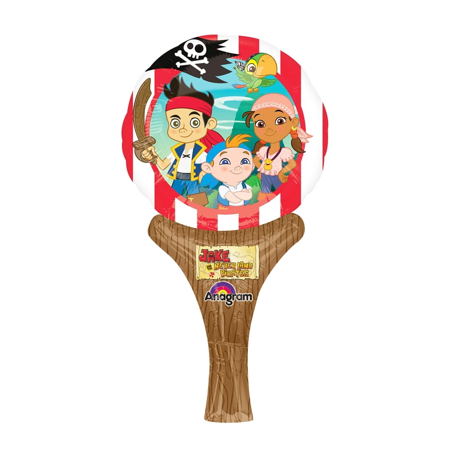 Le pays imaginaire est présenté sur un ballon jake et les pirates de 15 x 30cm, en forme de cornet de glace ! Cet article de décoration est gonflable et de couleur rouge. Il est composé d'un support en cornet sur lequel est accolé un ballon rond avec les images de Jake le pirate et ses compagnons.