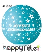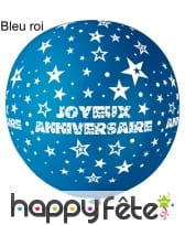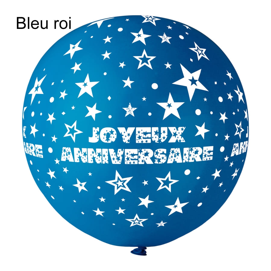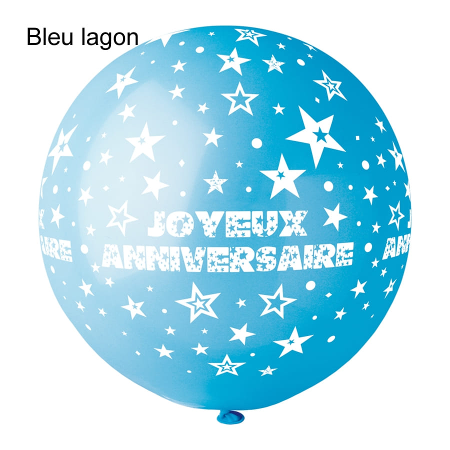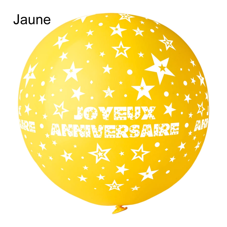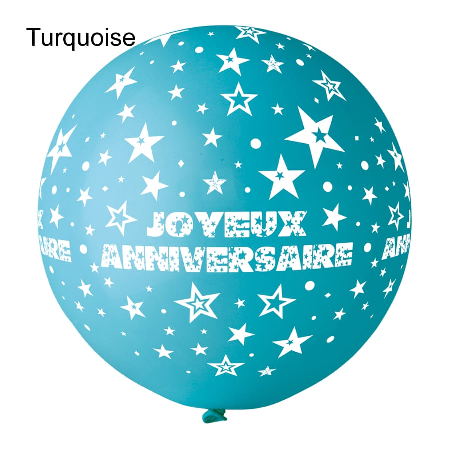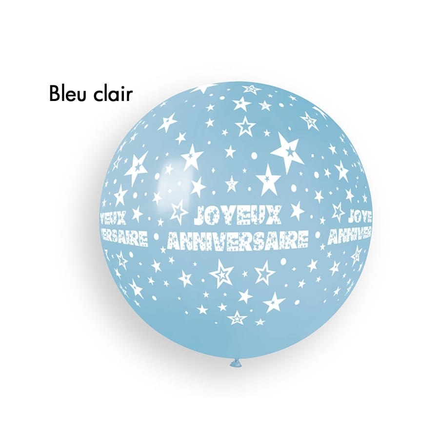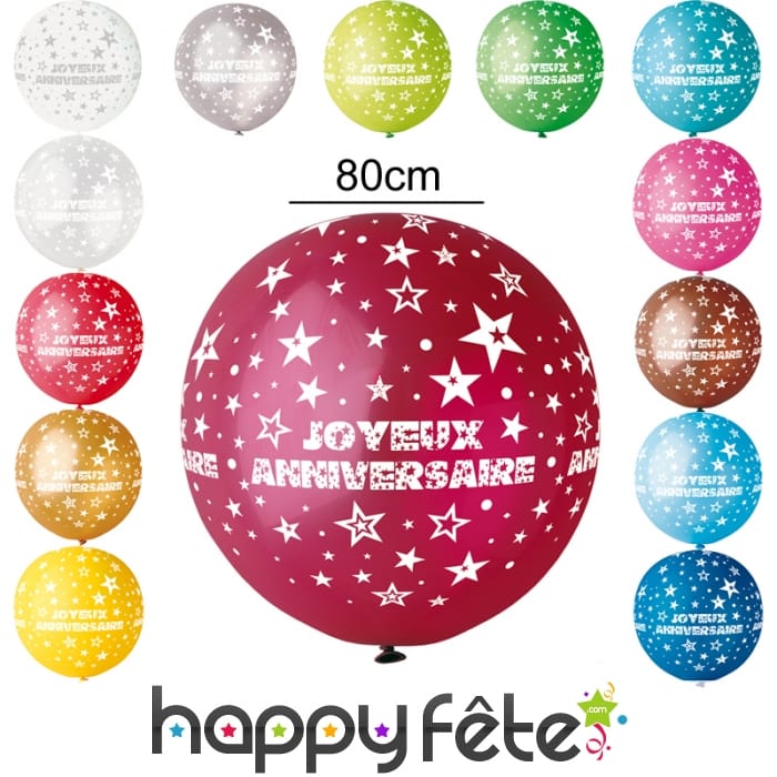 Pour chacun des évènements que vous organisez, nous avons les décorations qui vont avec, surtout s'il s'agit d'une fête d'anniversaire. En effet, nous avons ces différents types de ballons joyeux anniversaires géants à vous proposer. Nous avons de nombreuses couleurs disponibles comme l'argent, le blanc, le bleu roi, le bordeaux, le chocolat, le fuchsia, le jaune, le bleu lagon, l'or, le rouge foncé, le transparent, le turquoise, le vert et le vert anis. Autant de couleurs pour ces ballons de 80 cm de diamètre que nous vendons à l'unité où vous pouvez voir l'inscription : « Joyeux Anniversaire » sur chaque ballon, également orné d'étoiles.