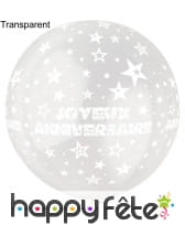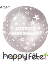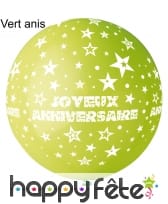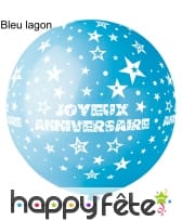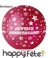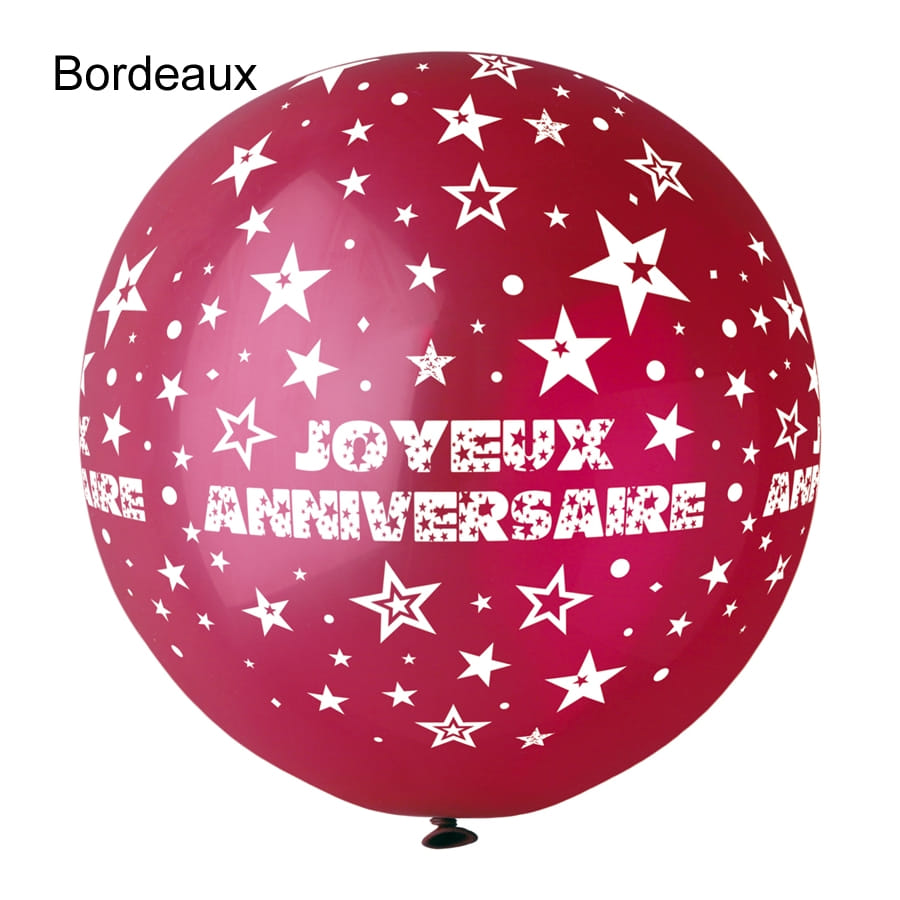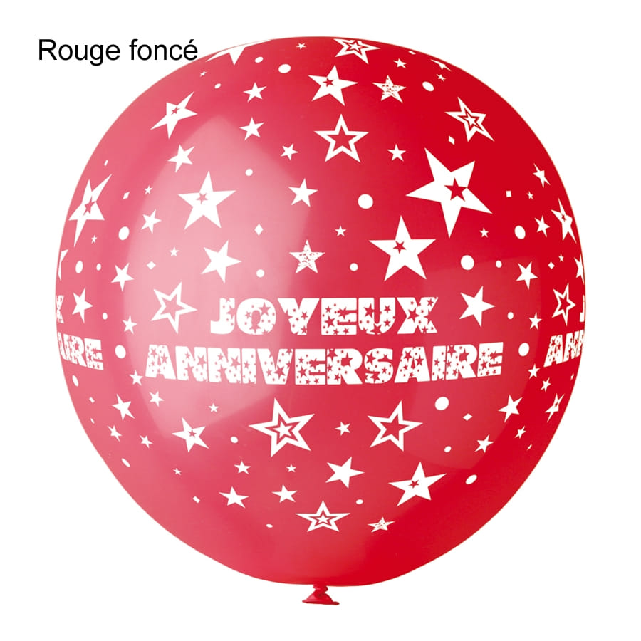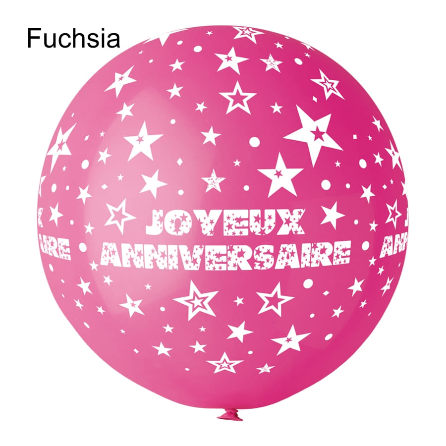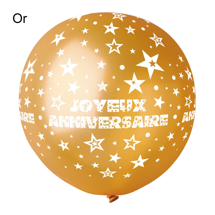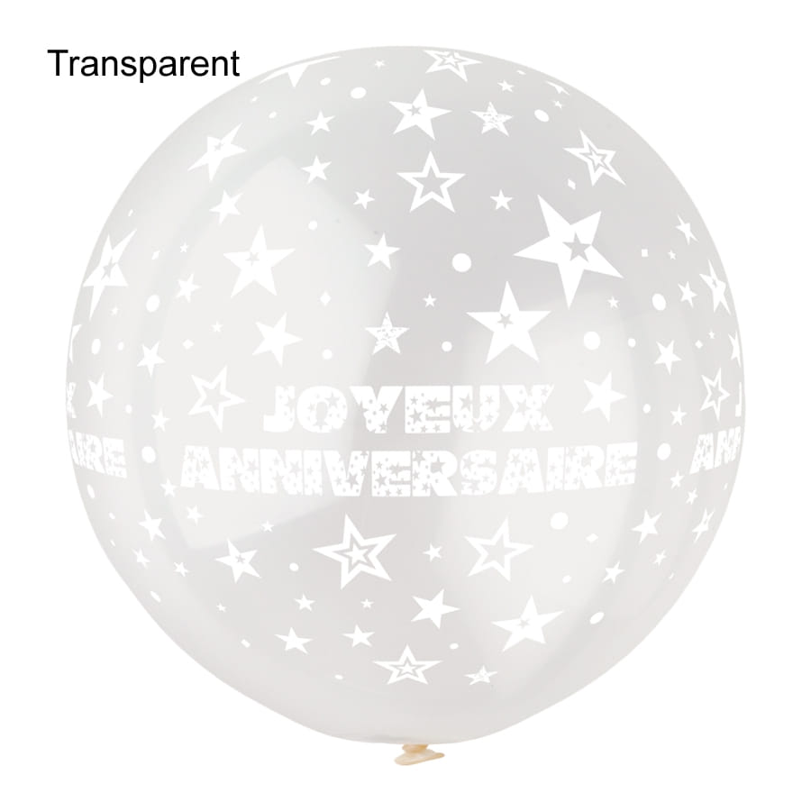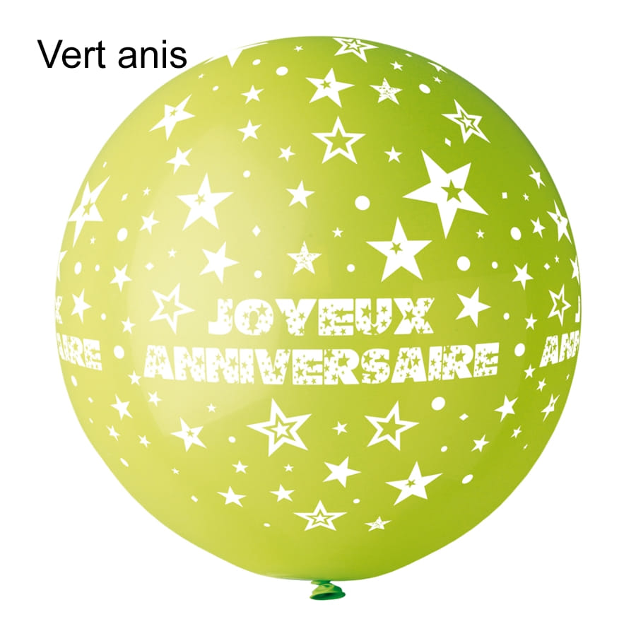 Pour chacun des évènements que vous organisez, nous avons les décorations qui vont avec, surtout s'il s'agit d'une fête d'anniversaire. En effet, nous avons ces différents types de ballons joyeux anniversaires géants à vous proposer. Nous avons de nombreuses couleurs disponibles comme l'argent, le blanc, le bleu roi, le bordeaux, le chocolat, le fuchsia, le jaune, le bleu lagon, l'or, le rouge foncé, le transparent, le turquoise, le vert et le vert anis. Autant de couleurs pour ces ballons de 80 cm de diamètre que nous vendons à l'unité où vous pouvez voir l'inscription : « Joyeux Anniversaire » sur chaque ballon, également orné d'étoiles.