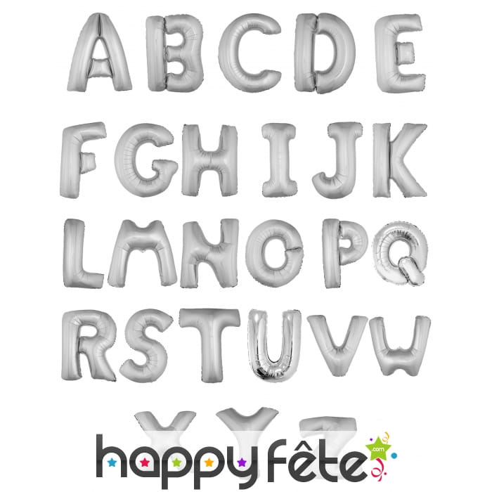 Le ballon en lettre argentée mesure environ 1 m de haut.