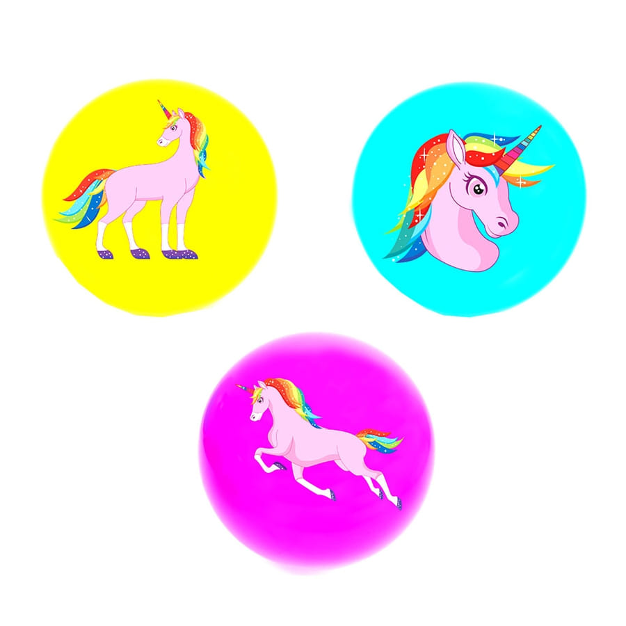 Le ballon présente une licorne rose à la crinière couleur arc-en-ciel, imprimée sur un fond de couleur unie.