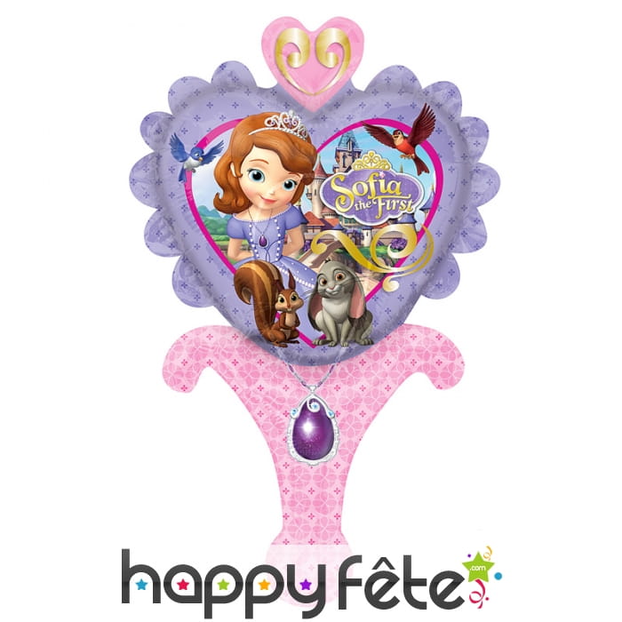 Goûtez une vie de château avec la princesse Sofia. Les jeunes demoiselles seront facilement séduites par ce ballon princesse Sofia coeur de 15 X 30cm de dimension. Il est sous licence Disney, gonflable, et de couleur rose et violet. Il a la forme d'un coeur fixé sur un support en forme de cornet.