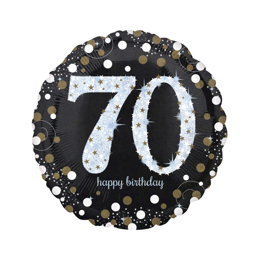 Plantez un décor à la hauteur de l'évènement en optant pour le ballon rond 70 ans noir argent de 71 cm.