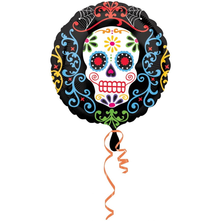 Le Ballon Dia de los Muertos coloré de 43 cm est en aluminium.
