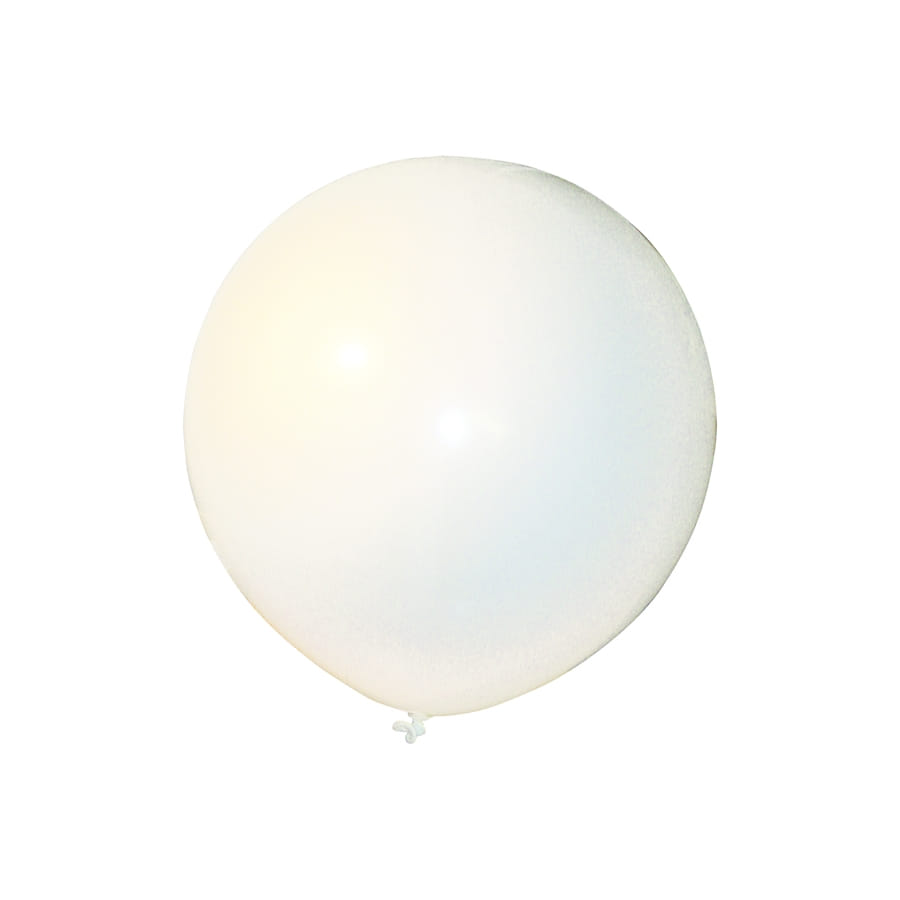 Ballon géant de couleur blanc. Chaque ballon possède une circonférence de 200 centimètres et un diamètre de 64 centimètres. Ils sont tous gonflables à l'air ou à l'hélium et sont fabriqués en matière biodégradable. Ils seront idéaux pour un mariage ou une naissance.