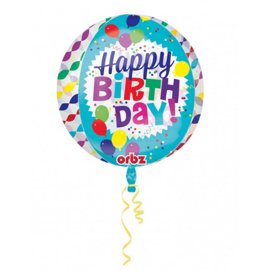 Le ballon rond imprimé de l'inscription "Happy Birthday" coloré et transparent est un ornement idéal pour un anniversaire.