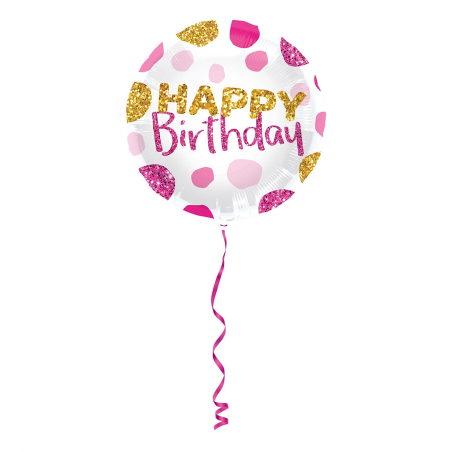 Le ballon rond happy birthday rose doré pailleté 45cm est original et mettra une touche flashy à une déco d'anniversaire.