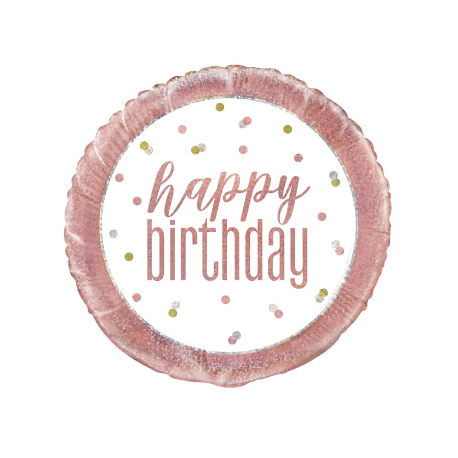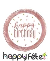 Donnez un côté chic et tendance à votre déco d'anniversaire grâce au ballon rond happy birthday rose et blanc de 45 cm.