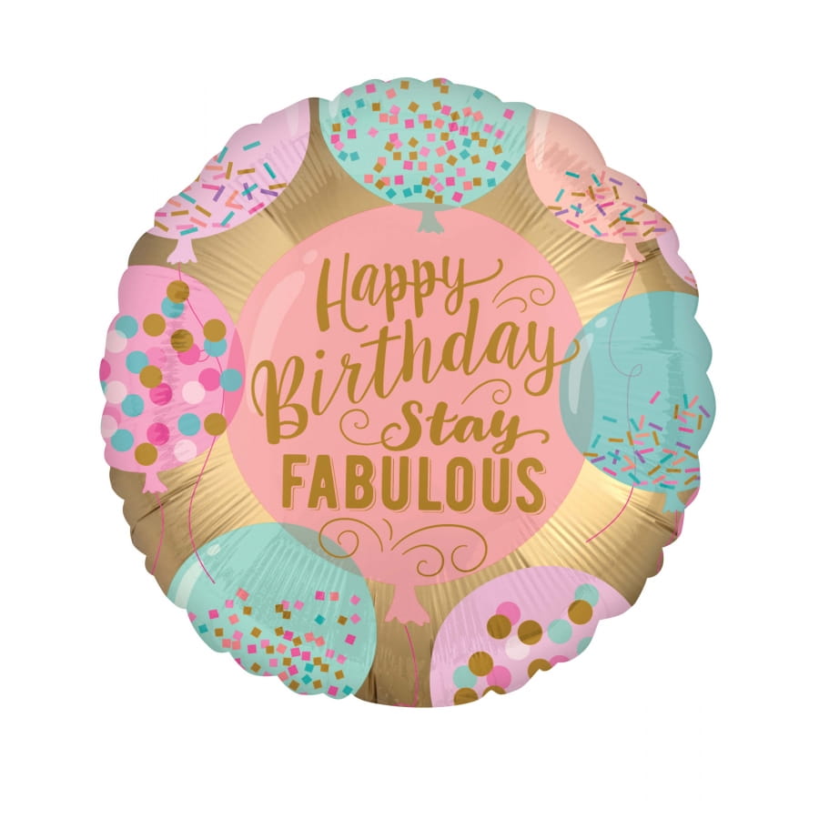 Le ballon rond Happy Birthday Stay Fabulous de 43 cm est en aluminium.