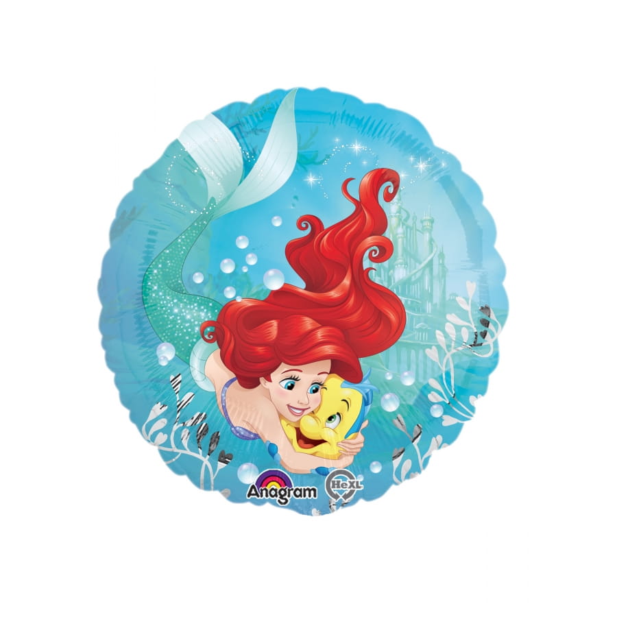 Fait en aluminium et gonflable à l'air comme à l'hélium, ce ballon est bleu marin et les deux personnages principaux de La petite sirène y sont dessinés.