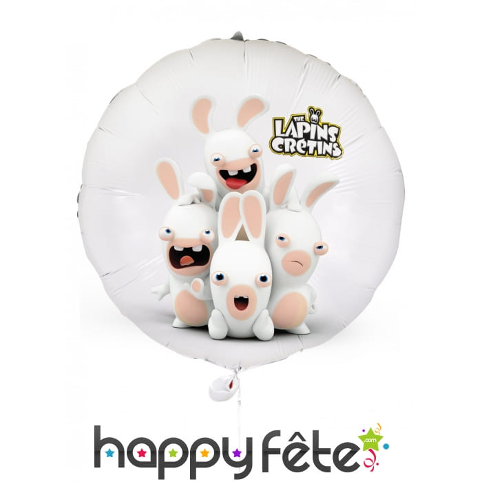 On voit sur le ballon l'image photoréaliste des célèbres lapins crétins dans tous leurs états.