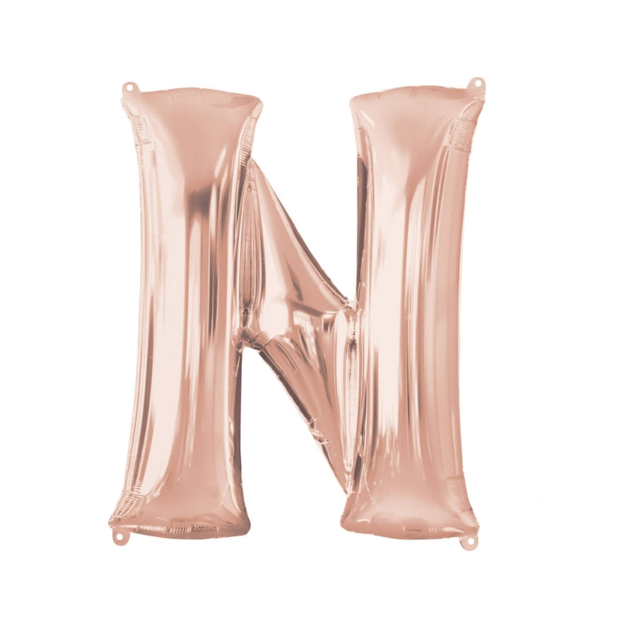Le ballon de couleur rose doré dispose d'oeillets permettant de faire passer une ficelle.