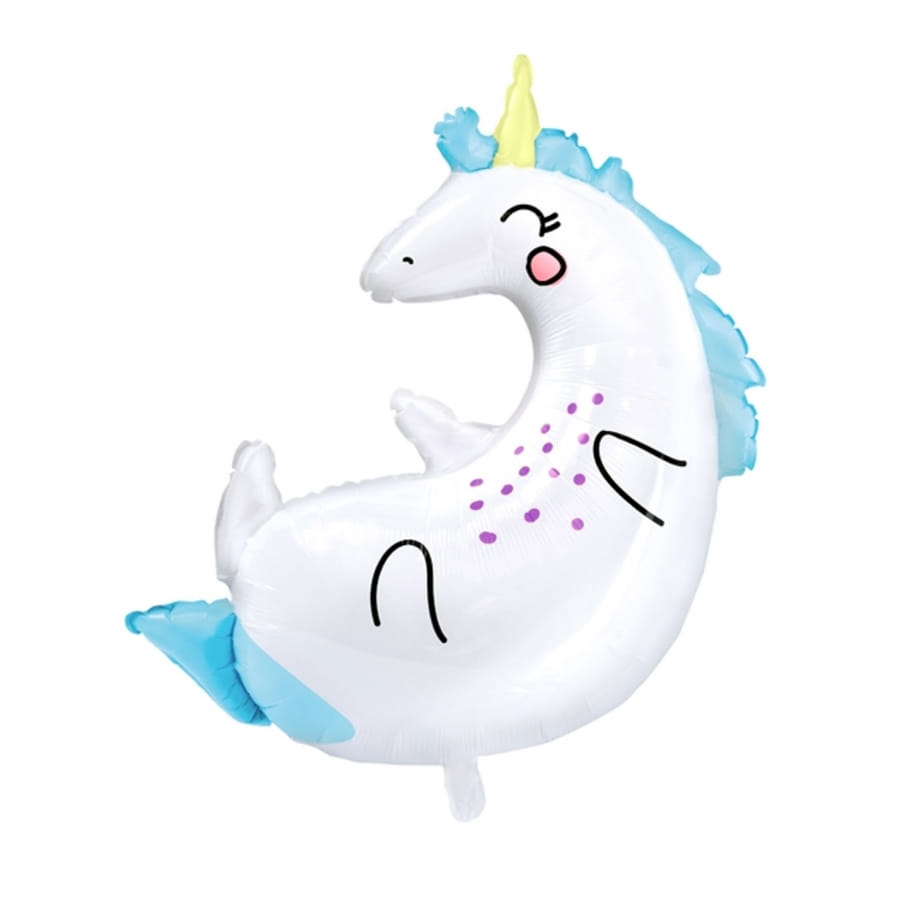 Le ballon silhouette de licorne sur le dos de 70 x 75 cm est gonflable à l'hélium ou à l'air.
