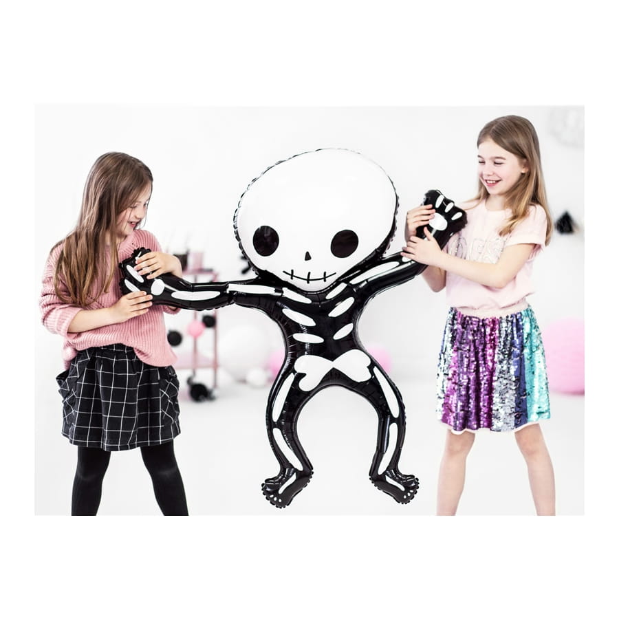 Le ballon squelette rigolo noir et blanc mesure 84 x 10 cm.