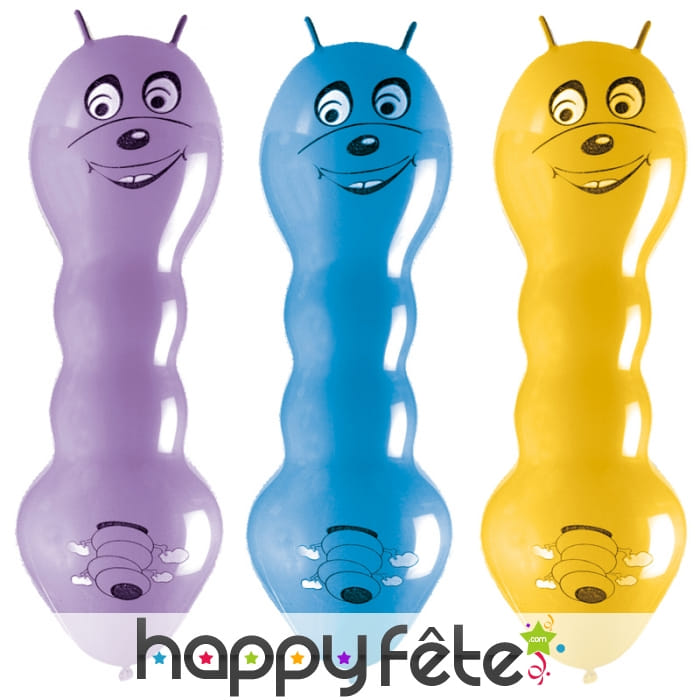 Pour changer des traditionnels ballons touts ronds que tout le monde utilise, nous avons ces ballons chenilles avec petites antennes que surtout les enfants vont adorer. Ces ballons ont une longueur de 100 cm et sont disponibles en plusieurs coloris. De plus, avec leur forme tout en longueur, ils sont très faciles à gonfler.