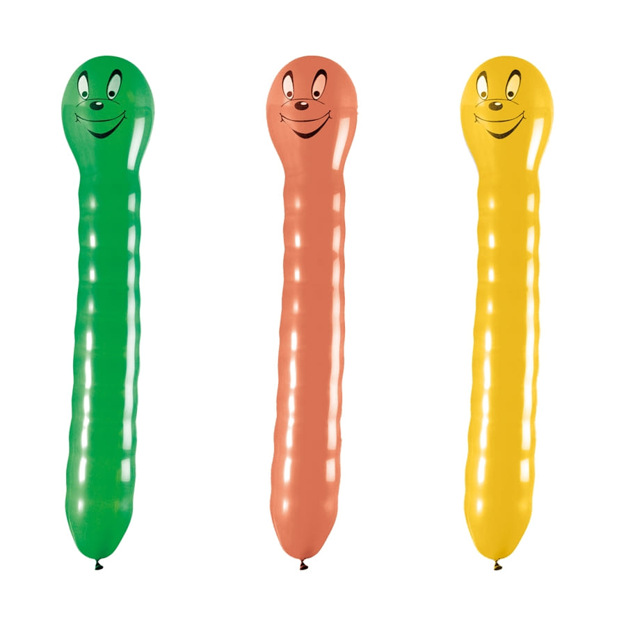 L'article Ballons en forme de chenille comprend un sachet de ballons multicolores en forme de chenille mesurant 100 cm de long. Il s'agit d'un produit de décoration idéal pour une fête d'enfant tournant autour du thème cirque ou animaux. Offerts dans des couleurs vives, ces ballons sont dotés d'une petite tête rigolote. L'article est disponible en sachet de 5 ou 10 ballons.