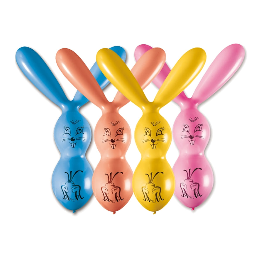 Ces ballons en forme de lapin sont tellement mignons que vous ne résisterez pas à en mettre partout lors de la fête que vous organiserez prochainement. Tout le monde va les adorer avec les différentes couleurs qu'il y a dans chaque sachet de 4 ou de 50. Ils ont une longueur de 90 cm chacun. Vous devez tenir le corps fermé pour pouvoir gonfler les oreilles puis relâcher pour gonfler le corps.