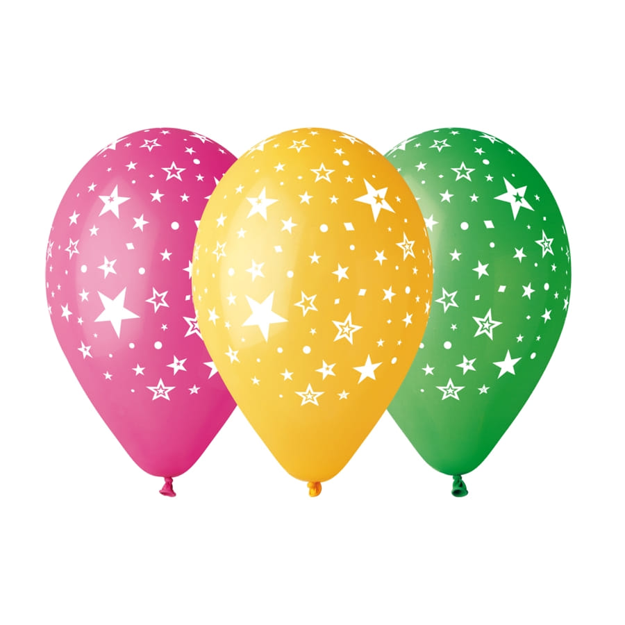 On peut très bien s'amuser avec une décoration fun tout en restant "verts" avec ces ballons multicolores en latex biodégradable imprimés d'étoiles. Les ballons mesurent 30 centimètres de diamètre et 105 centimètres de circonférence et gonflables à l'air ou à l'hélium. Ils sont parfaits pour un carnaval, un anniversaire, un mariage ou la Pâques.