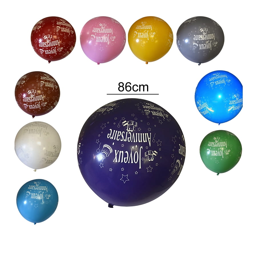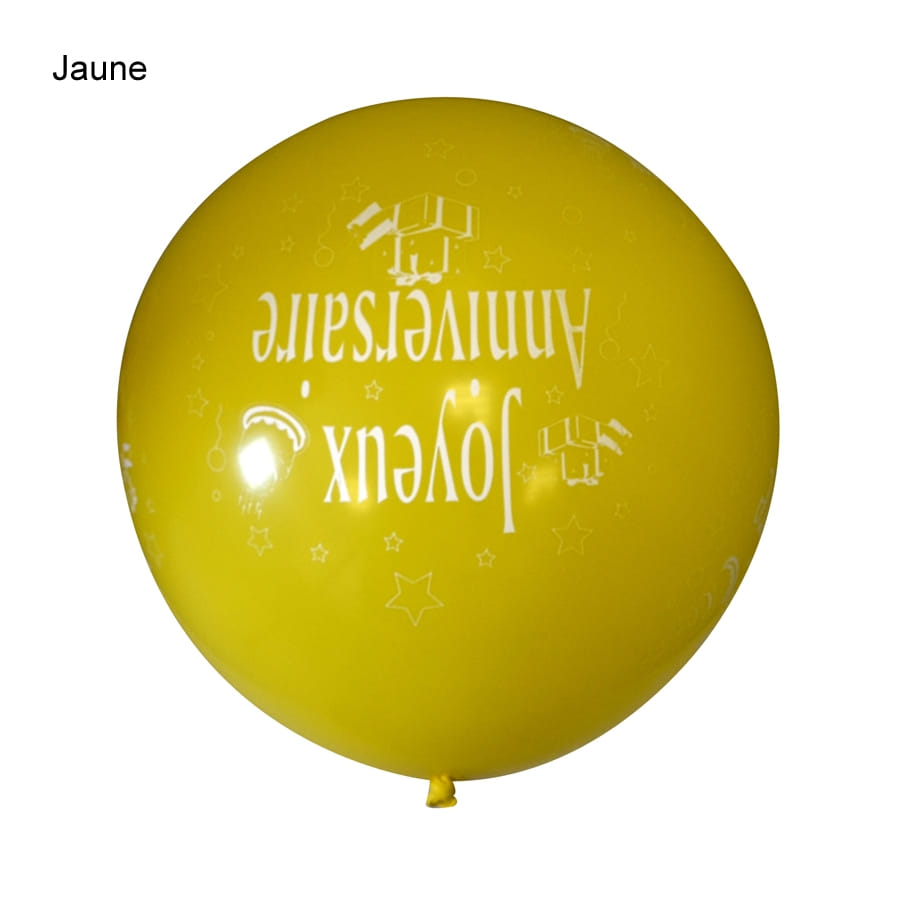Nous vous proposons ce magnifique ballon multicolore (blanc / bleu / gris / jaune / marron / rose / rouge / vert / violet), richement orné, sur le thème « Joyeux Anniversaire ». Géant, elle a 86 cm de diamètre une fois gonflée à l'air avec une pompe ou à l'hélium. Tous nos ballons sont en latex 100% naturels et biodégradables. Ils décoreront à merveille votre salle de fête ou vos jardins pour toute fête d'anniversaire, à tous les âges !