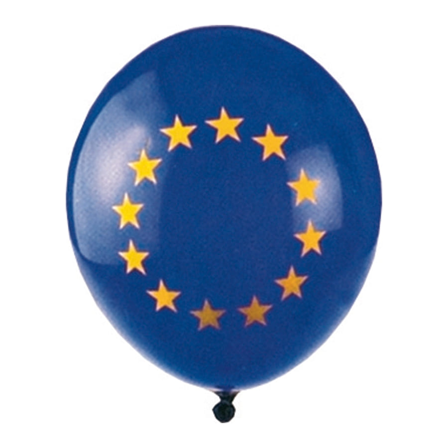 Nous parlons ici d'un lot de 5 ballons aux couleurs du drapeau de l'Union Européenne, avec ses étoiles jaunes sur fond bleu.